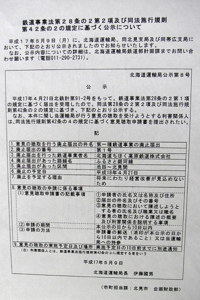 そのような状況下にあって、いくらワンマン化などで経費を節減したところで、銀河線は毎年多額の赤字を計上する状況から脱することは出来ませんでした。本来であればもっと早くに廃止されていたところが、十勝地方の大物政治家の影響力で何とか存続してきたという話も聞きます。しかし、このままでは累積する赤字に、地元自治体の財政そのものが破綻しかねない状況となり、ついに廃止の決定が下されました。